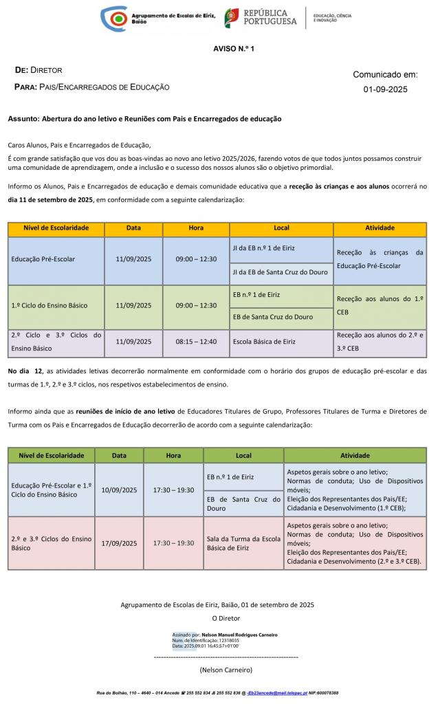 01/09/2025 Abertura do ano letivo e Reuniões com Pais e Encarregados de educação Por escola_help em Avisos