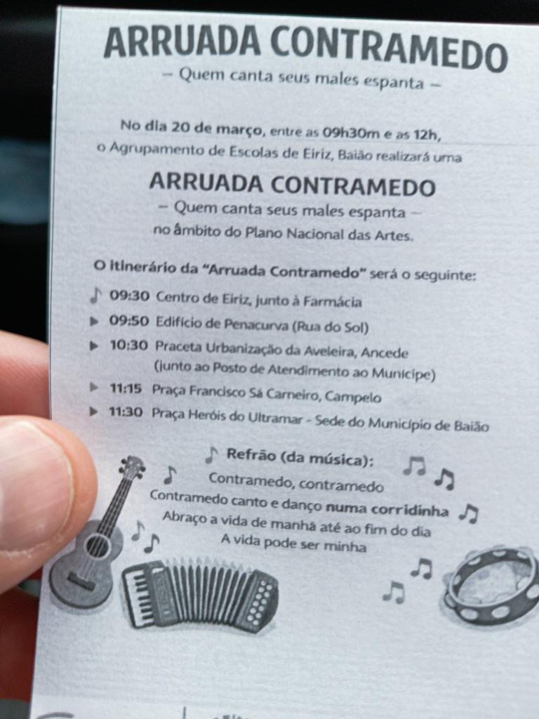 O Agrupamento de Escolas de Eiriz reagiu a CONTRAMEDO e fez-se à estrada, convidando a Comunidade a participar ativamente, neste momento cultural. A manhã preenchida com humanismo, música e tradição, revestiu uma imagem do território na Bienal e deu-lhe a devida consideração.