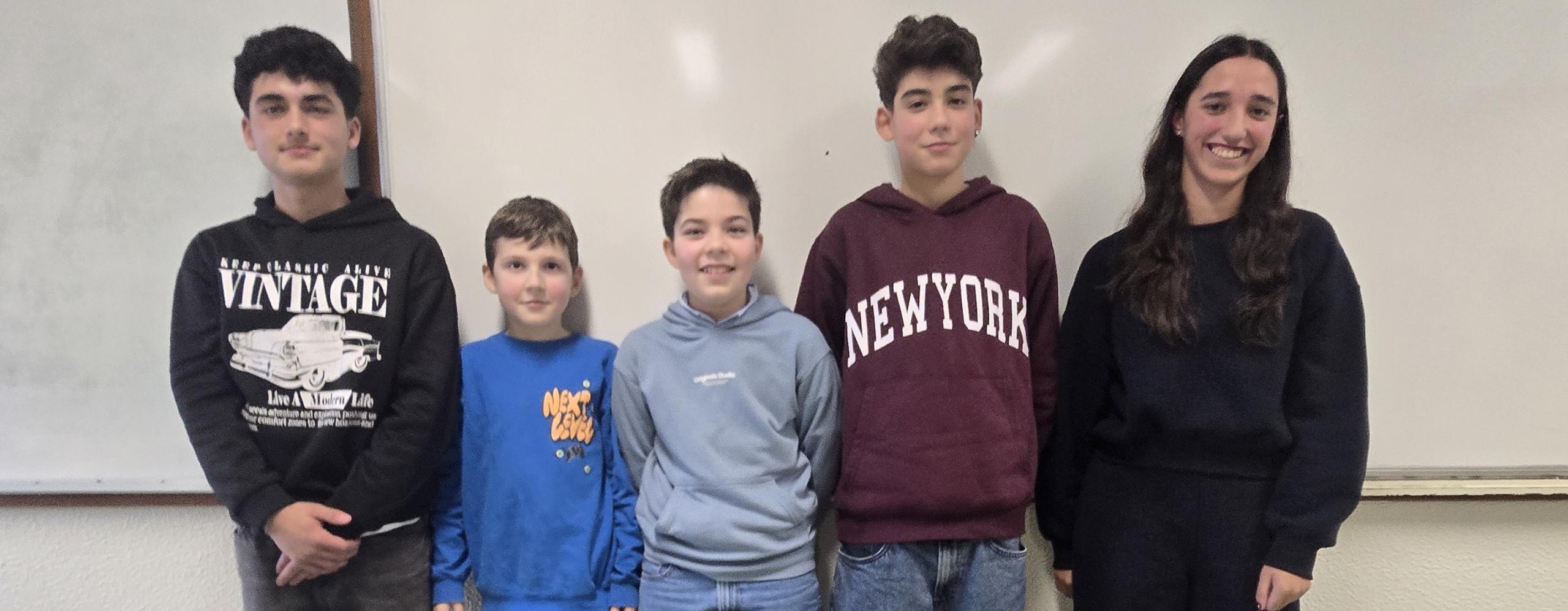 Os felizes vencedores, de cada ano, foram: Gabriel Pinto (5º B); Simão Silva (6º B); Luís Ribeiro (7º B); David Cardoso (8ºB) e Bianca Lima (9º A).