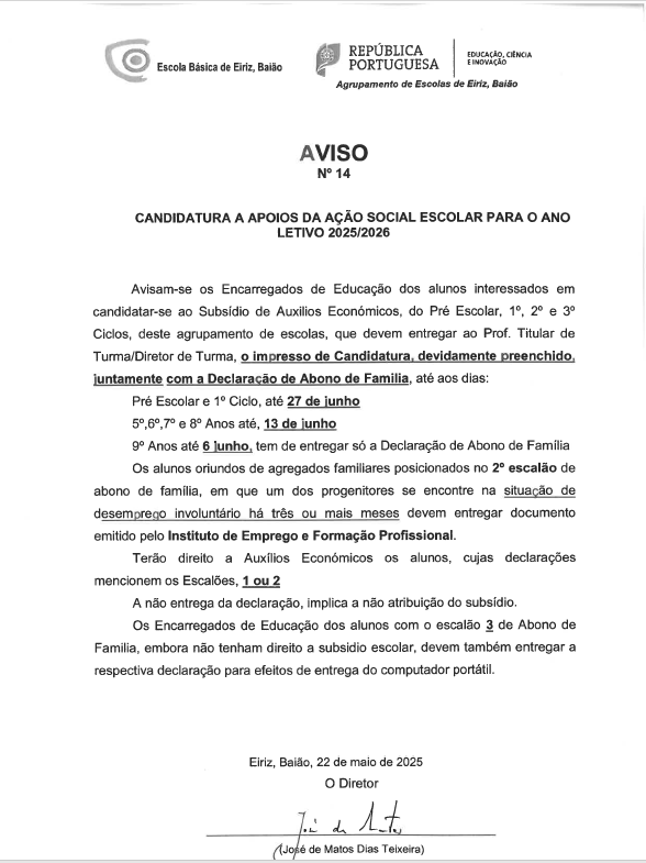 23/05/2025 Candidatura a apoios da Ação Social Escolar para o ano letivo 2025/2026 Por escola_help em Avisos, Notícias