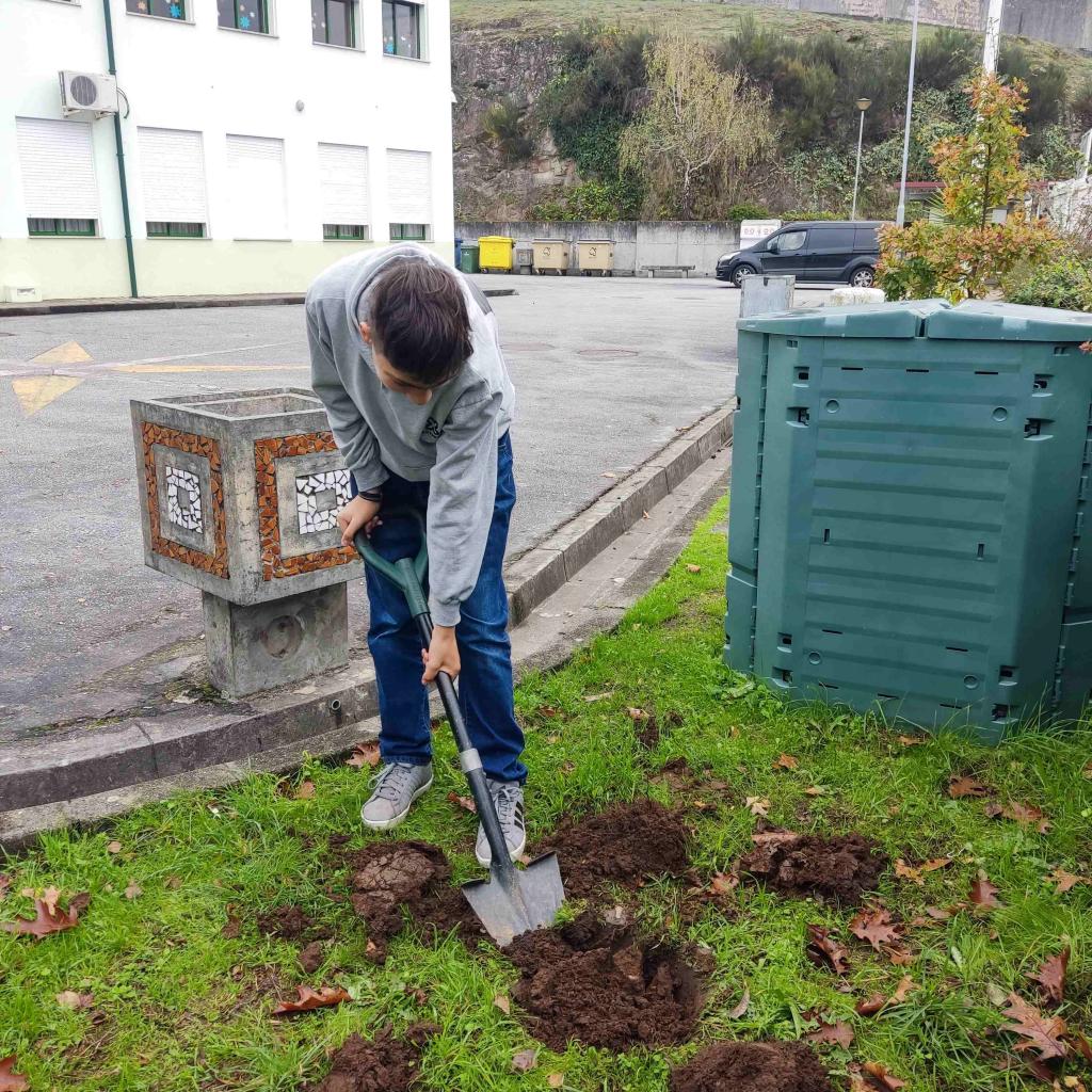 Assim, foram plantados o azevinho e o loureiro, no espaço exterior da escola, com a particularidade de este ano se ter utilizado o composto produzido pelos alunos do Clube no ano letivo transato.