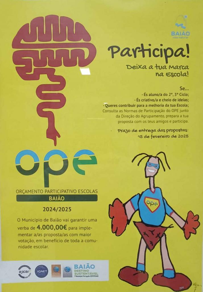 “O Agrupamento de Escolas de Eiriz desafiado pela iniciativa da Câmara Municipal de Baião, convida a Comunidade Educativa a “deixar uma marca na escola”, através de propostas para melhorar o ambiente escolar. ” A mais votada é a eleita….