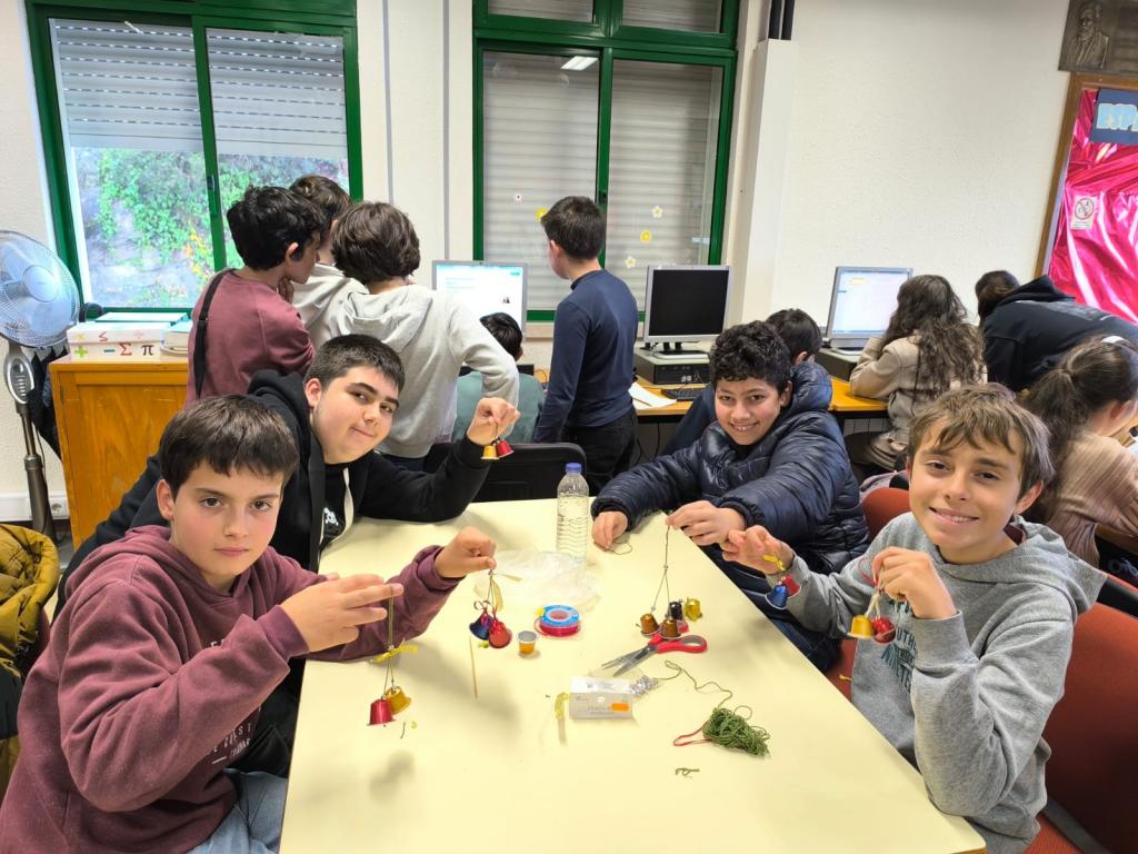 Os alunos confecionaram enfeites para os seus pinheiros de Natal.