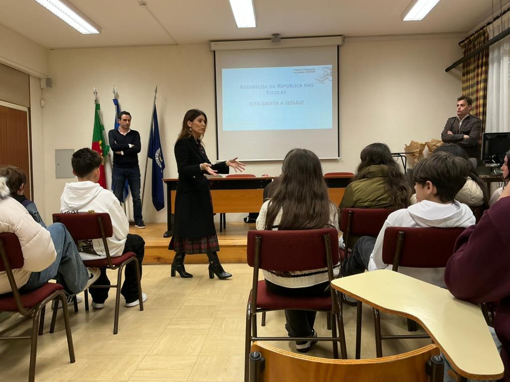 Decorreu no dia 13 de janeiro do presente ano, a Sessão Escolar do Parlamento dos Jovens, Básico, com a visita da Deputada Andreia Neto da bancada parlamentar do PSD. Os alunos que constituem as listas no âmbito do Parlamento dos Jovens, foram sensibilizados para o funcionamento da Assembleia da República, trâmites e competências a desenvolver nos trabalhos parlamentares. Tendo como pano de fundo o tema: “Literacia financeira: os jovens CONTAM!”, foi possível ainda esclarecer algumas dúvidas e abordar algumas propostas que se encontram sobre a alçada do Ministério de Estado e das Finanças. O propósito de “enturmar” será sempre familiarizar os nossos jovens alunos com temas que lhes farão dar significado e competências para a vida quotidiana. Posto isto, nestas dimensões, também somos ESCOLA!!!!!